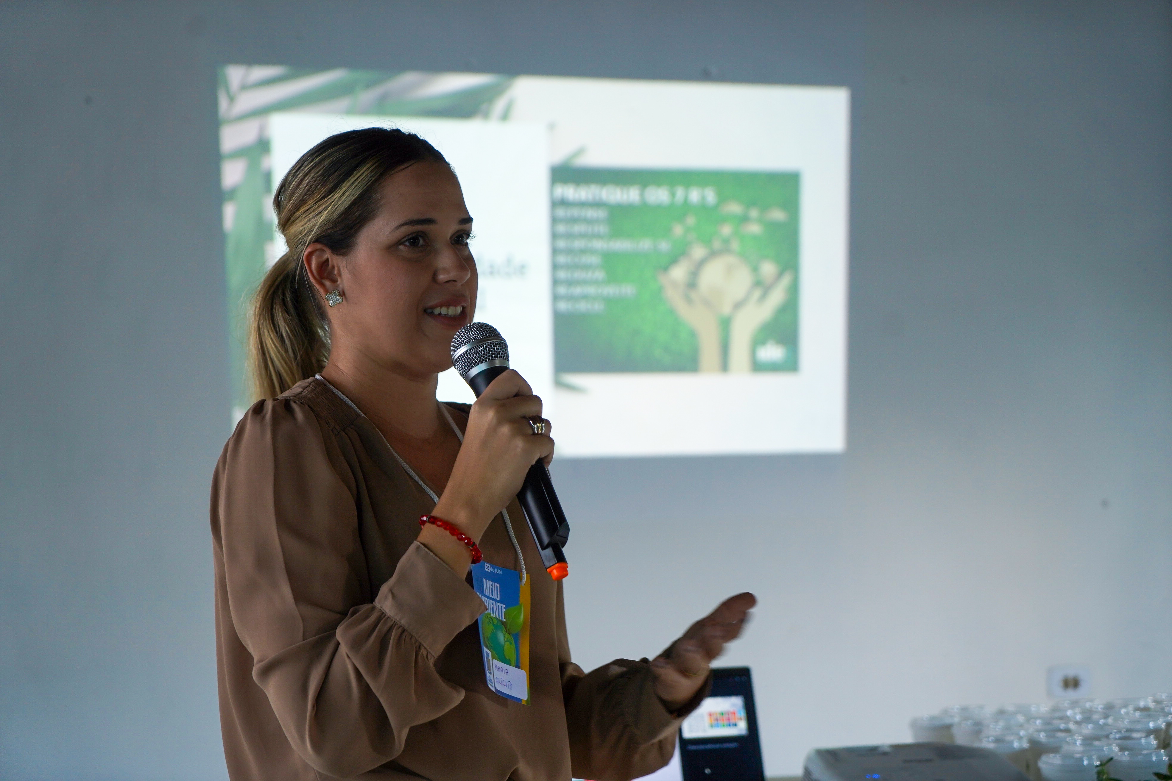 Na sequência, foi realizada uma palestra sobre o significado do Dia Mundial do Meio Ambiente e os desafios da atualidade em relação à preservação dos recursos naturais. A secretária municipal de Meio Ambiente, Maria Alicia, e uma pessoa representante da Secretaria Estadual conduziram o momento.