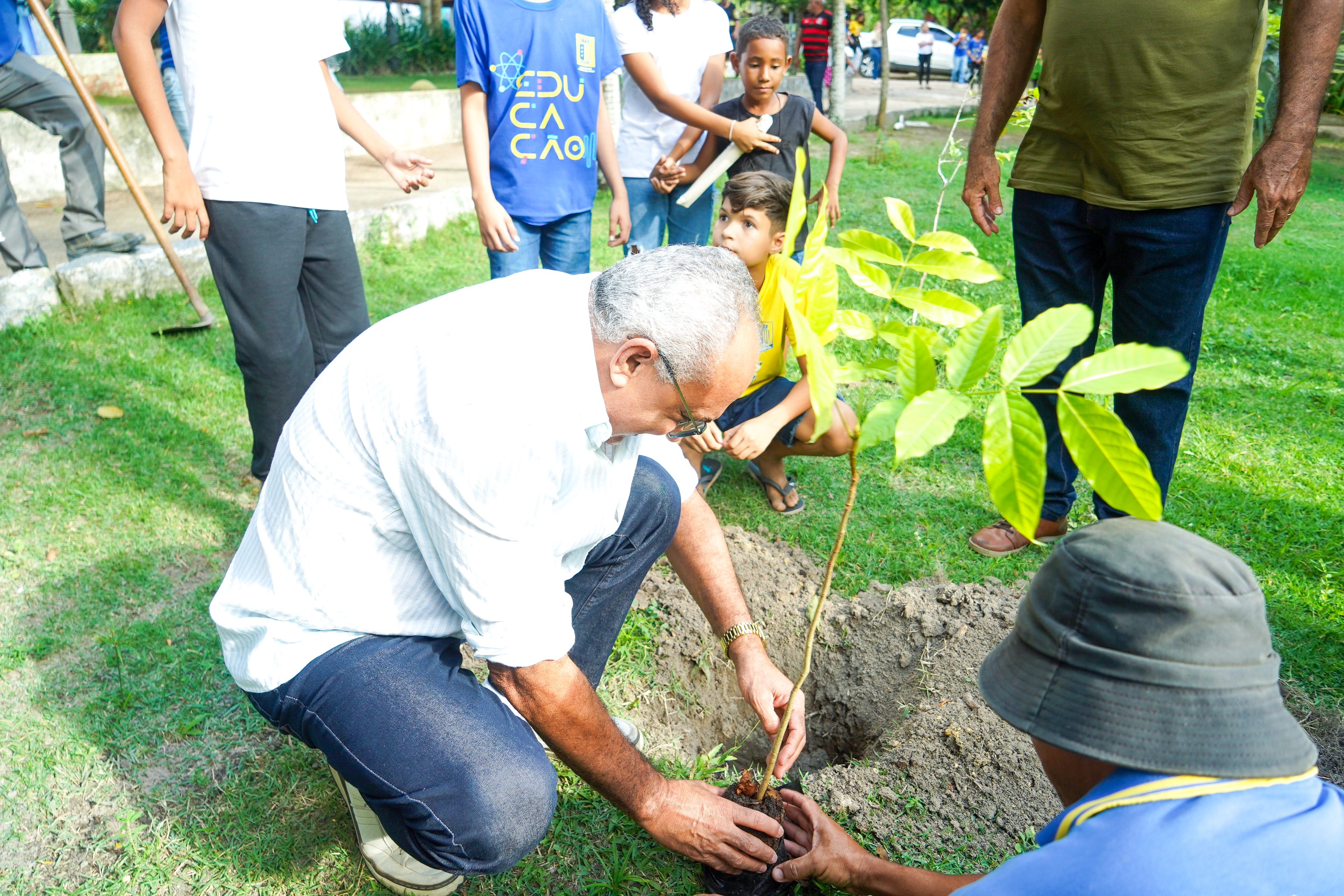 Encerrando as atividades do dia, houve a distribuição de mudas aos presentes, seguida de um ato simbólico de plantio no Parque Ecológico, com participação das autoridades e da comunidade. A ação reforça o compromisso do município com práticas ambientais sustentáveis e o incentivo à educação ambiental.